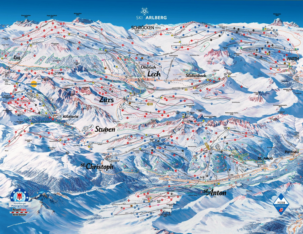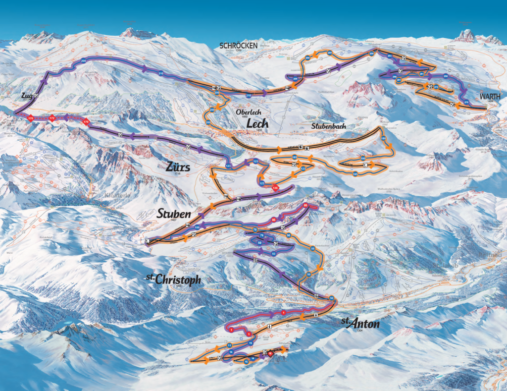 The Arlberg is the heart of the Austrian Alps, a mountain region that connects five extraordinary ski destinations: Lech, Zürs, Stuben, St. Christoph, and St. Anton. Together they create one of the world’s most celebrated ski areas, with 174 miles of groomed runs, 111 miles of freeride terrain, and 84 lifts connecting it all. With an average of 23 feet of snow each winter, this is where every kind of skier finds their rhythm.
